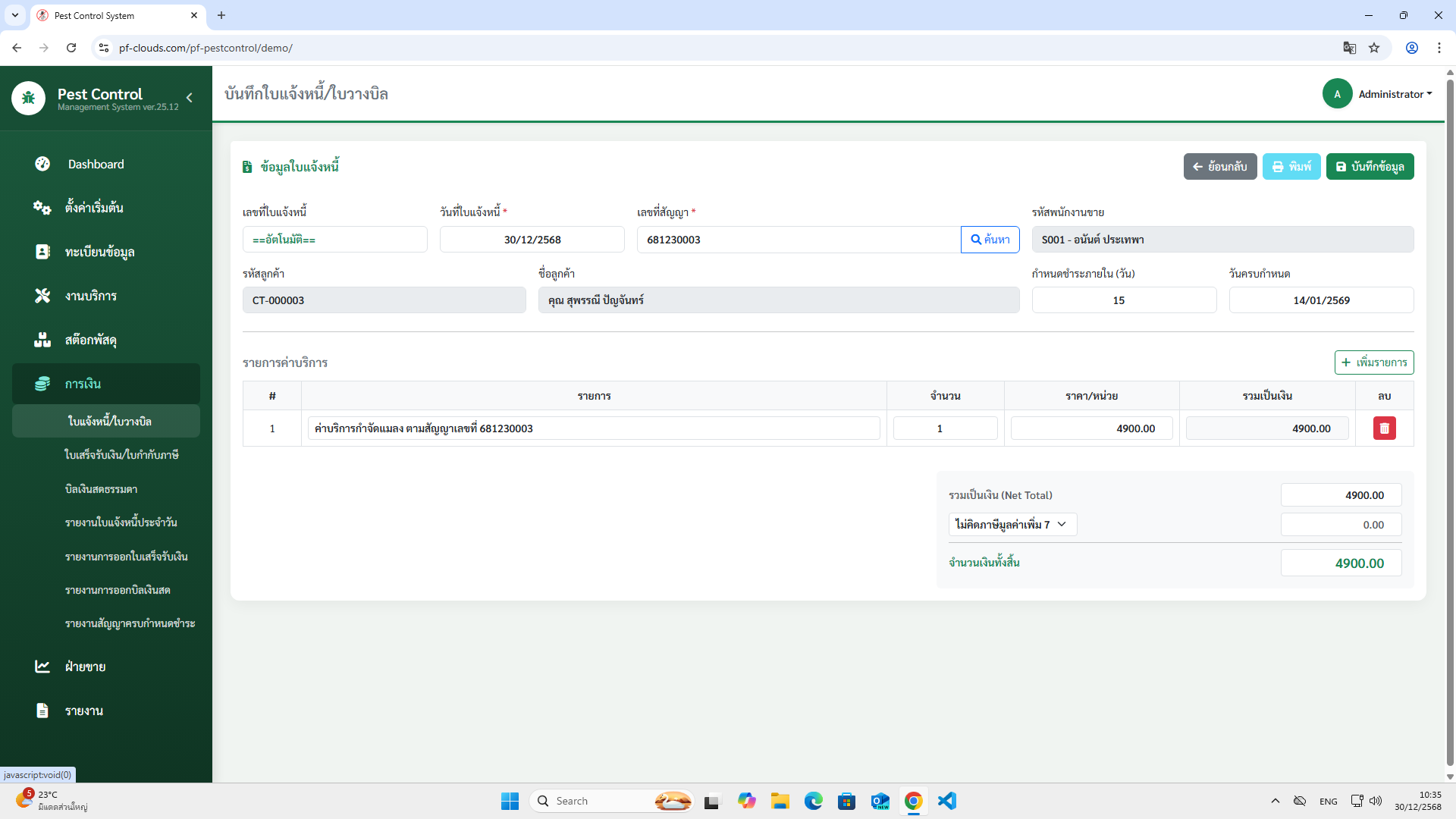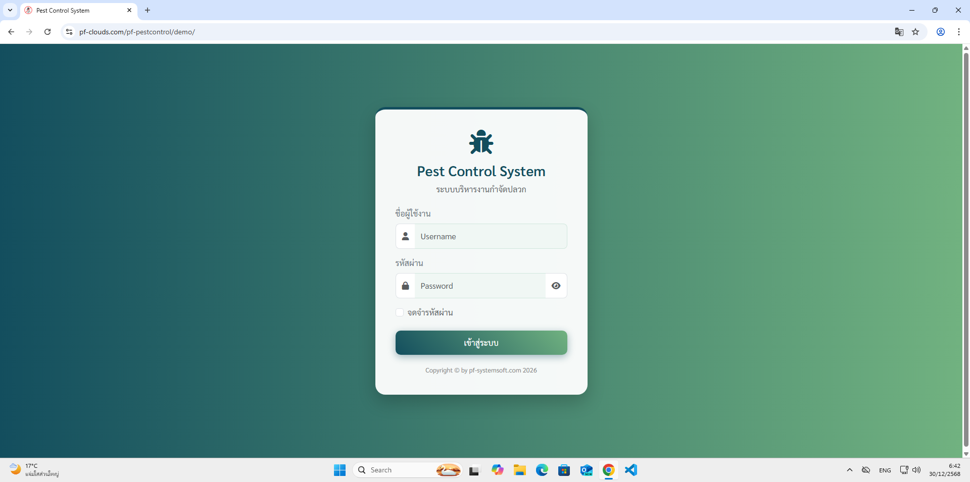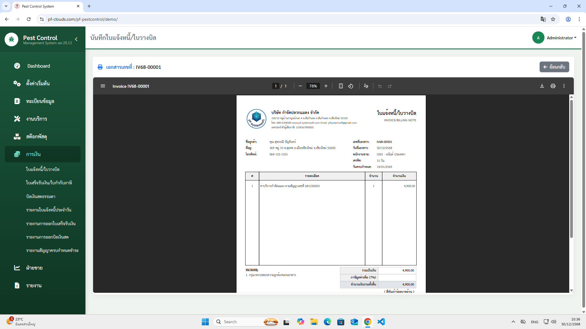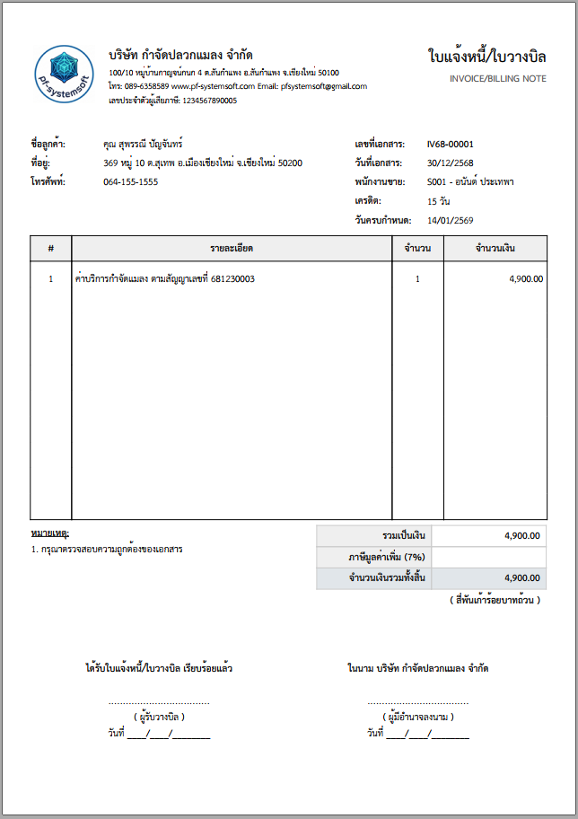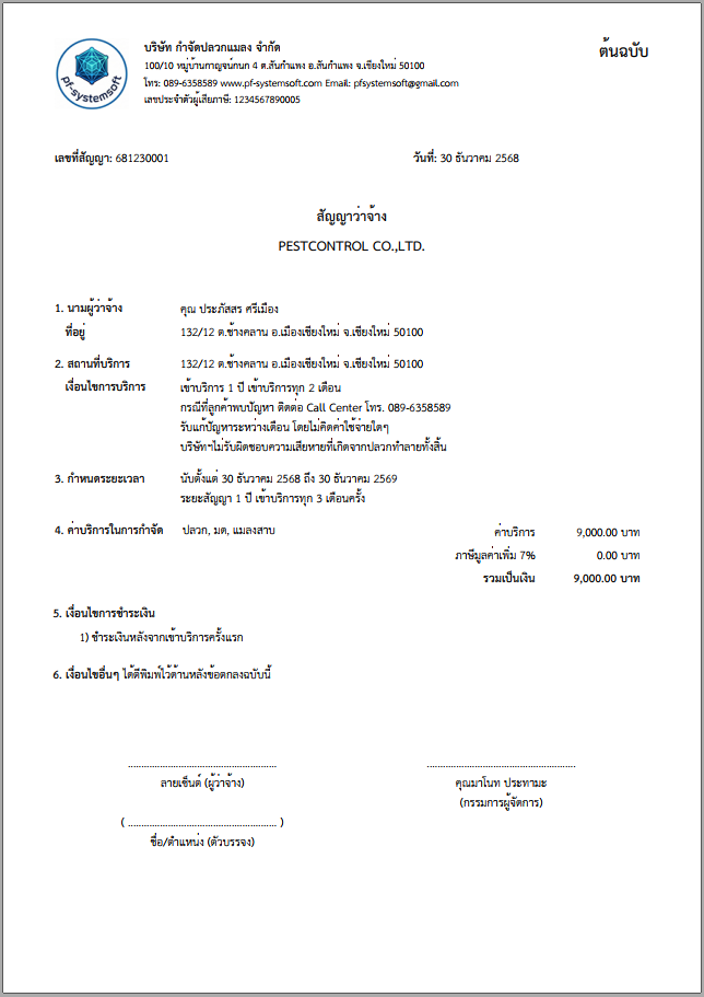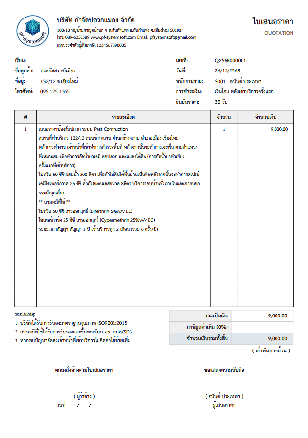 คุณสมบัติโปรแกรม Pest Control System Ver.2026