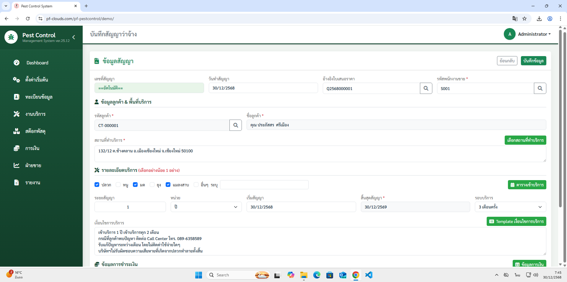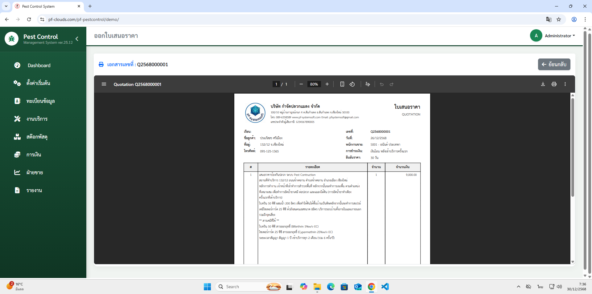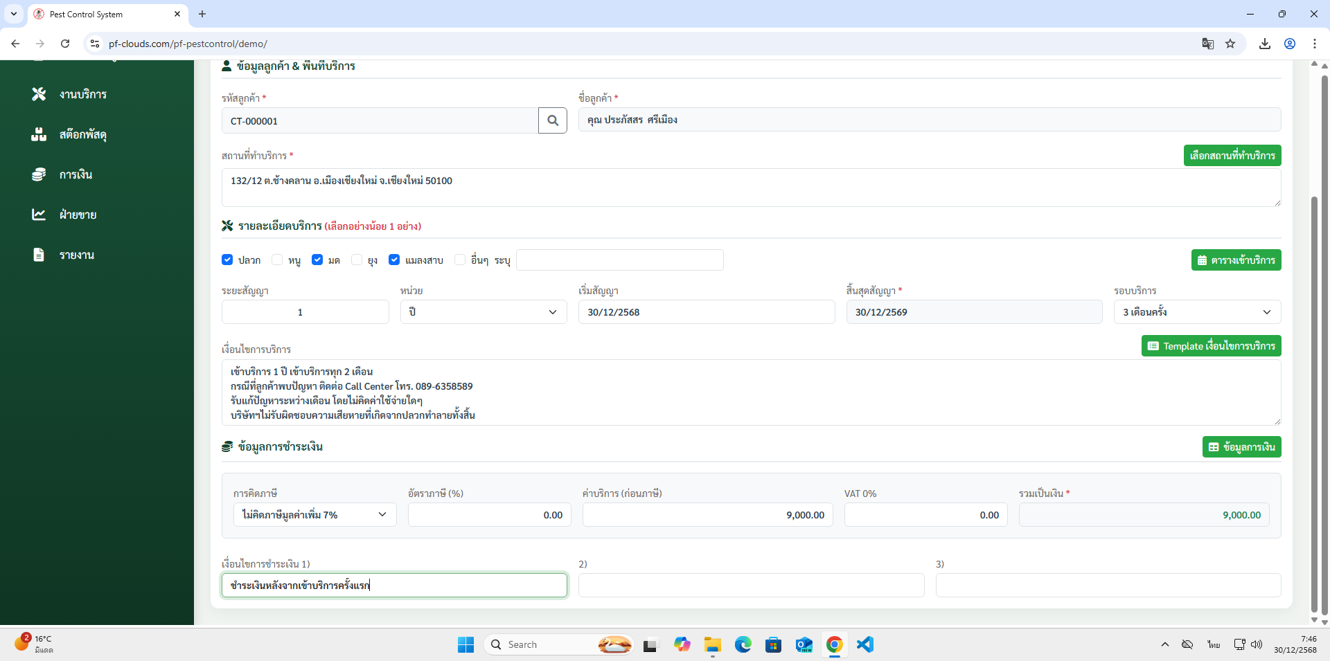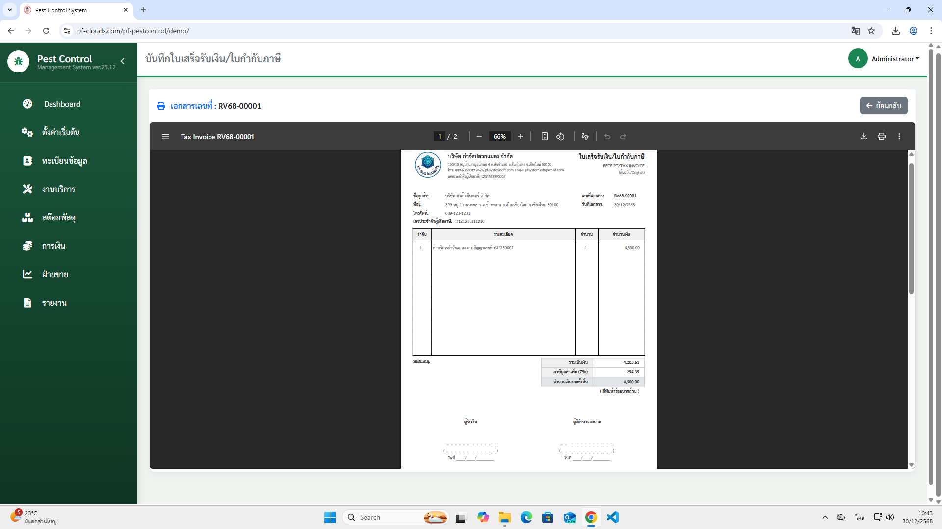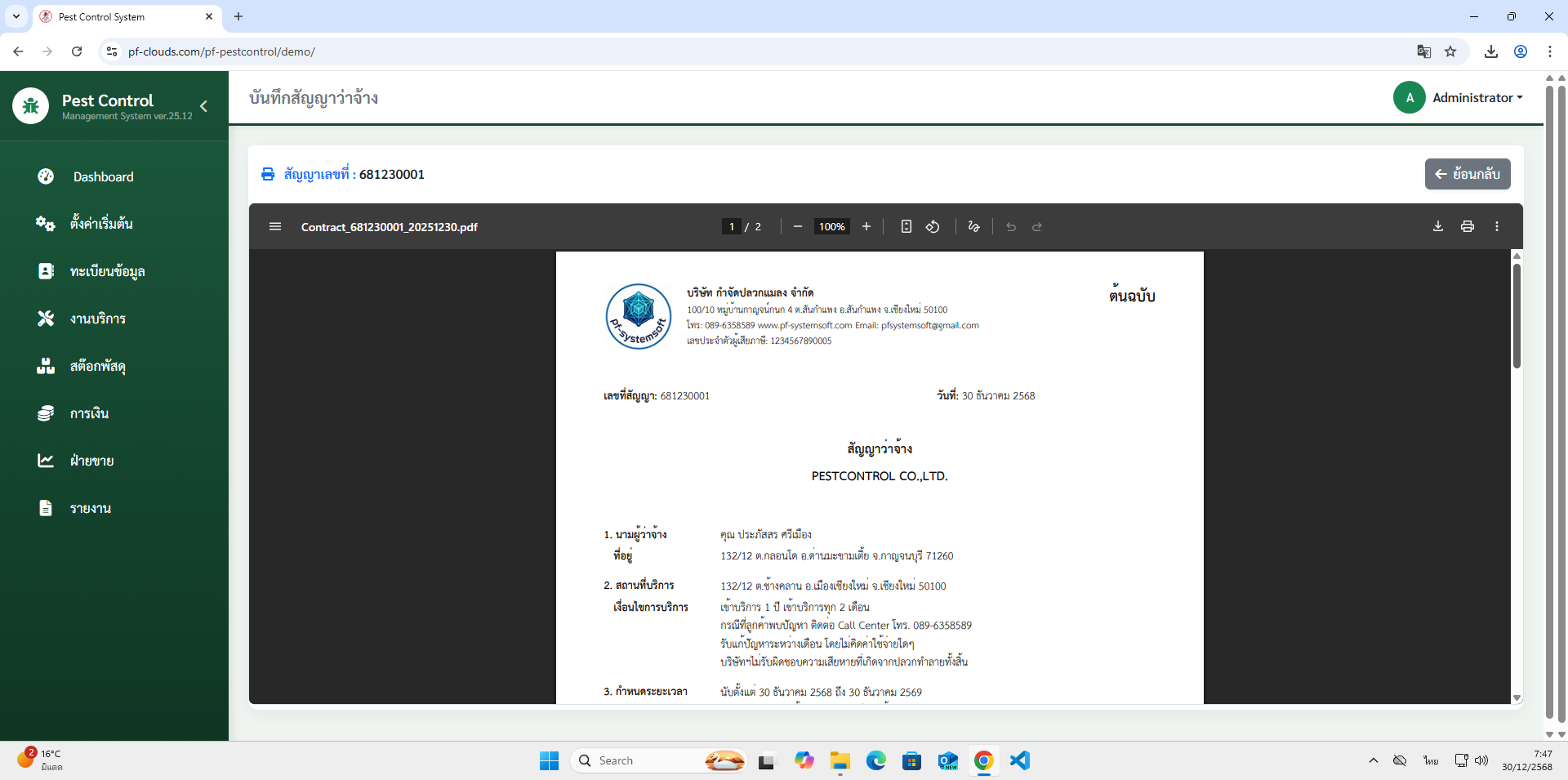 คุณสมบัติโปรแกรม Pest Control System Ver.2026