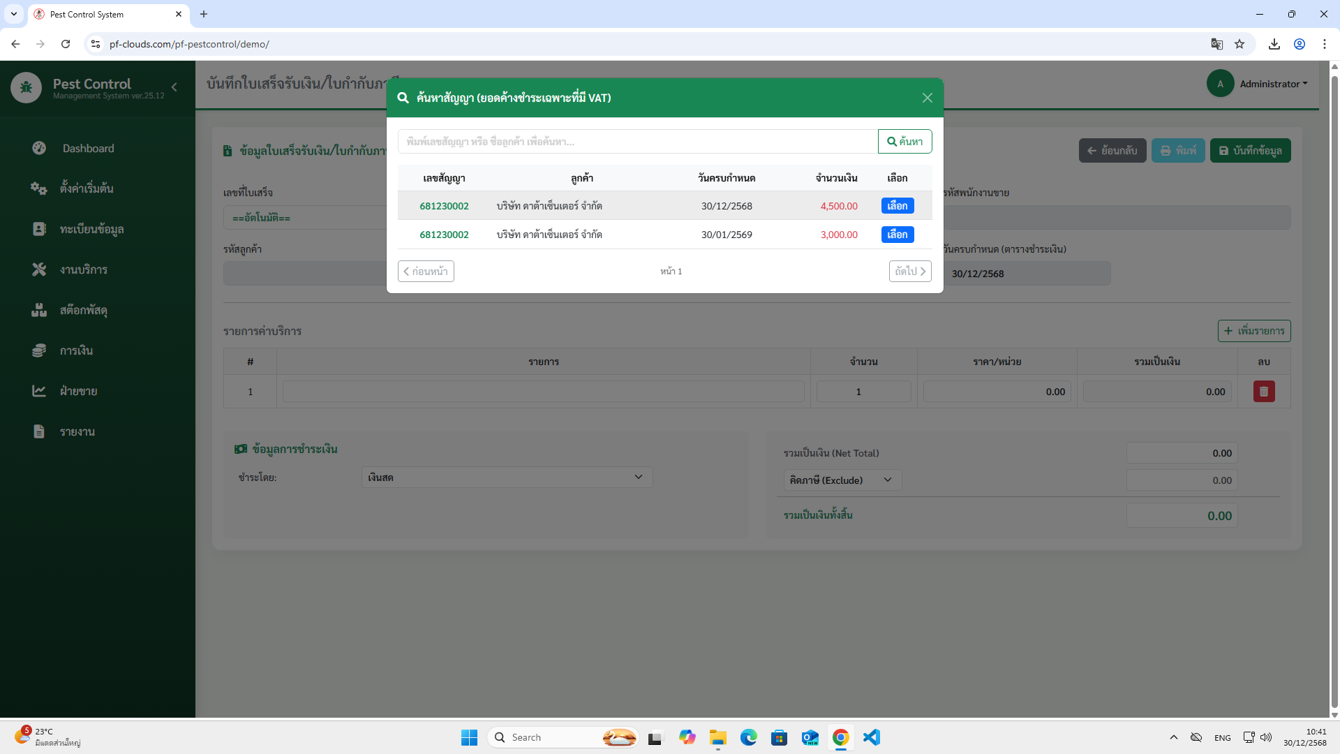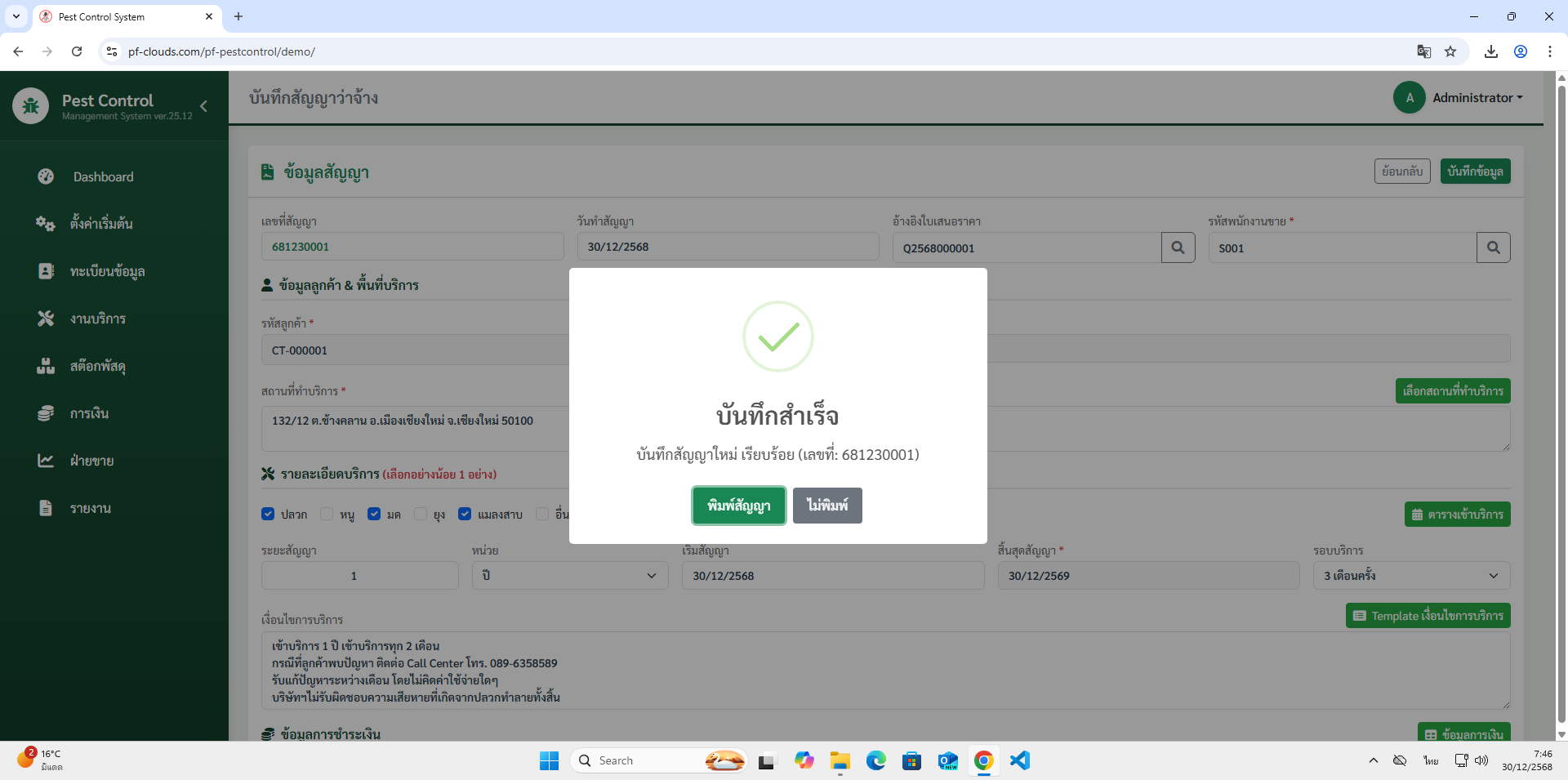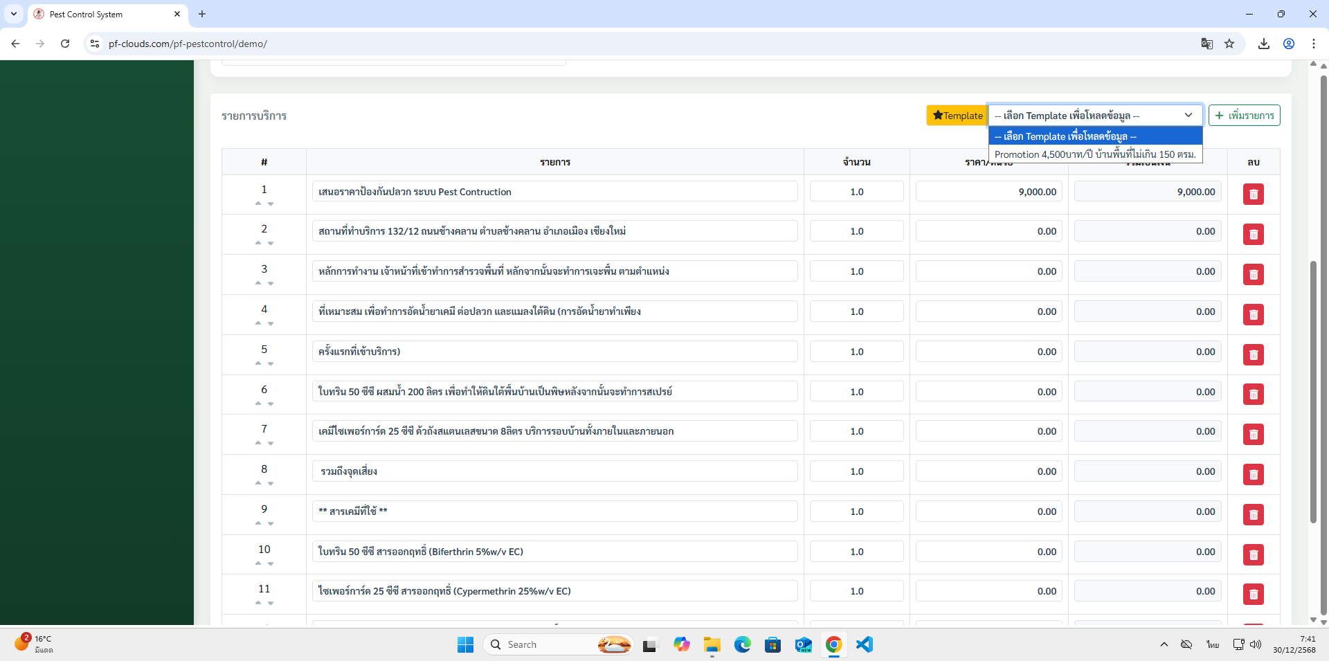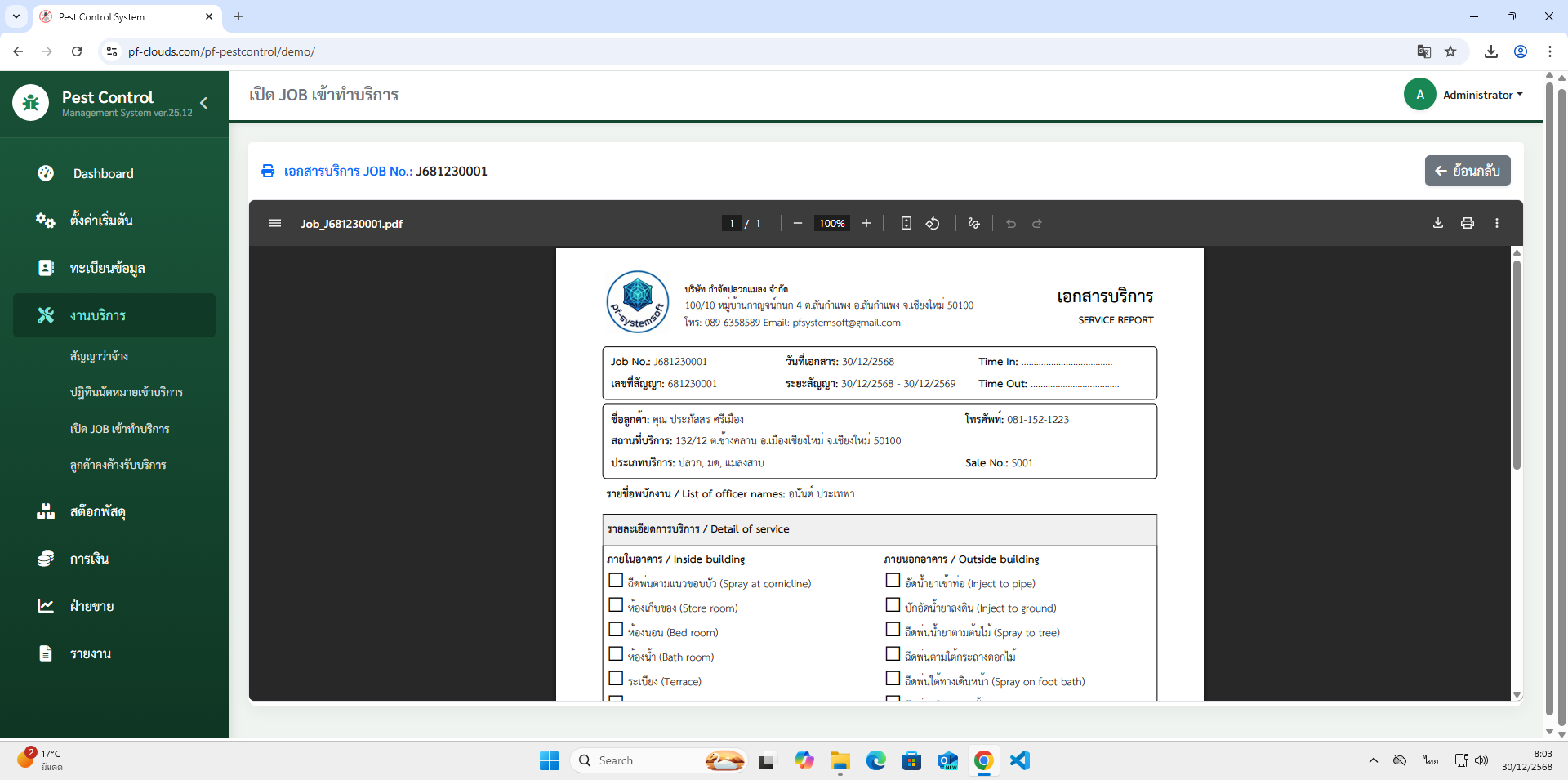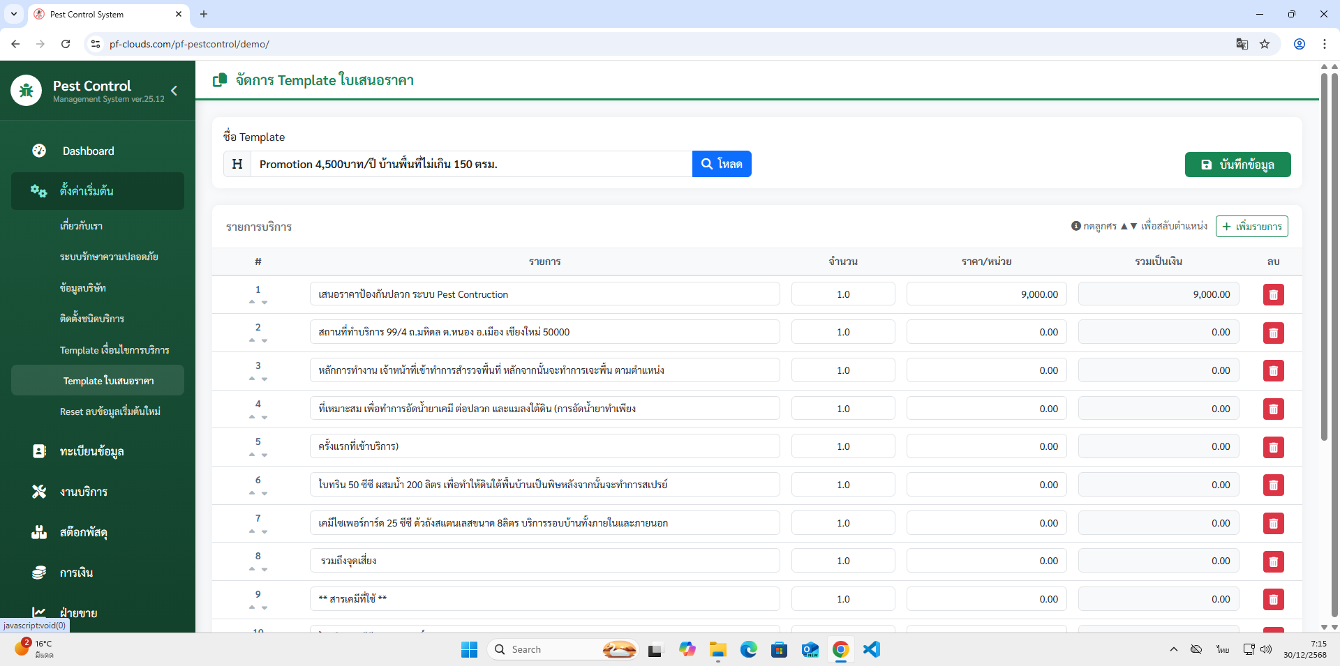 คุณสมบัติโปรแกรม Pest Control System Ver.2026