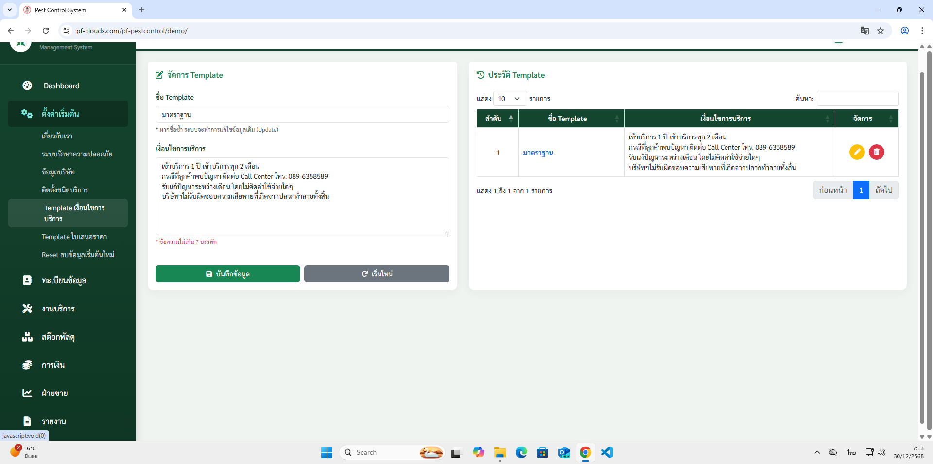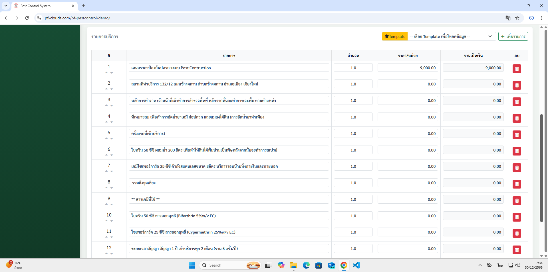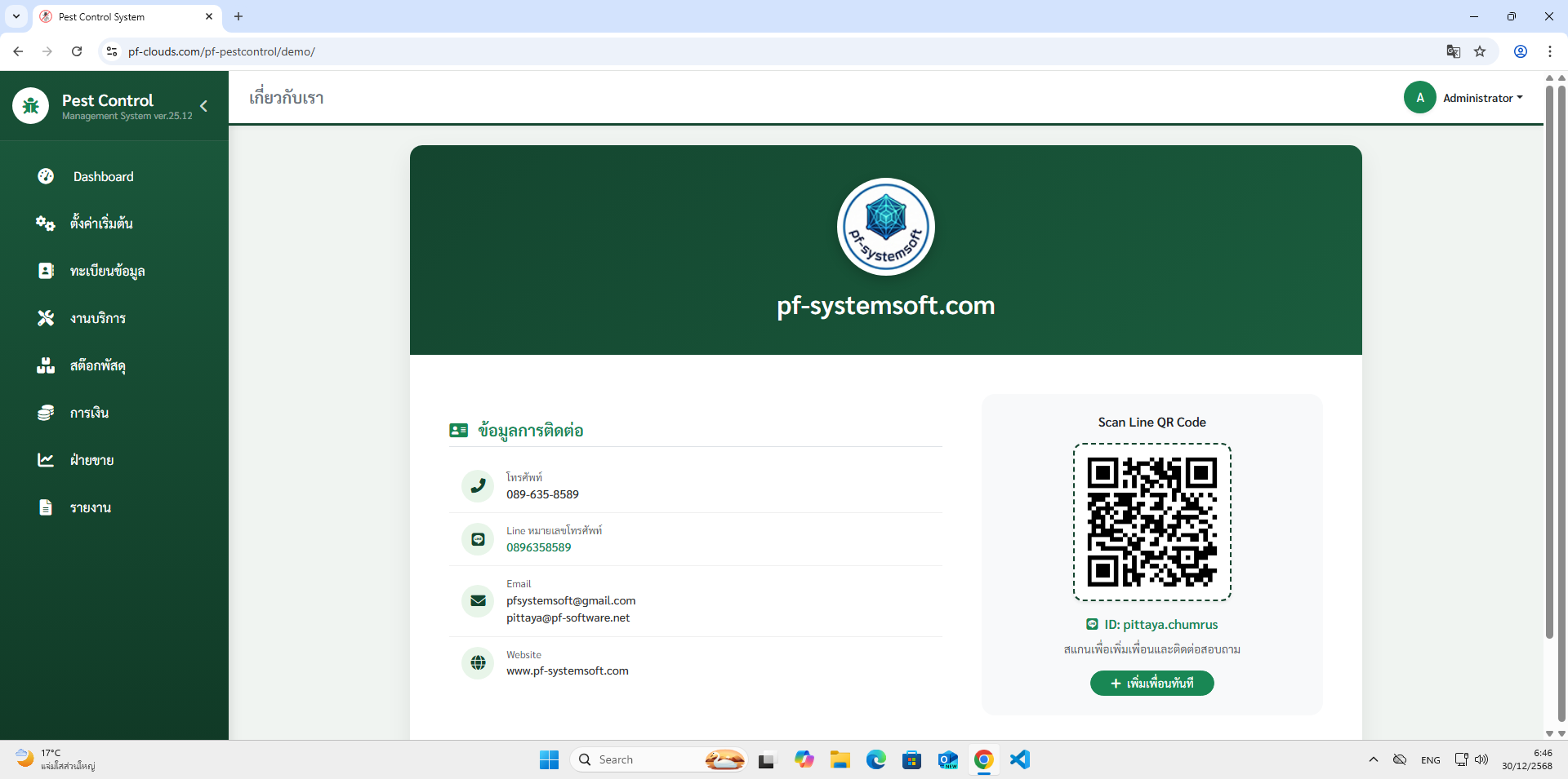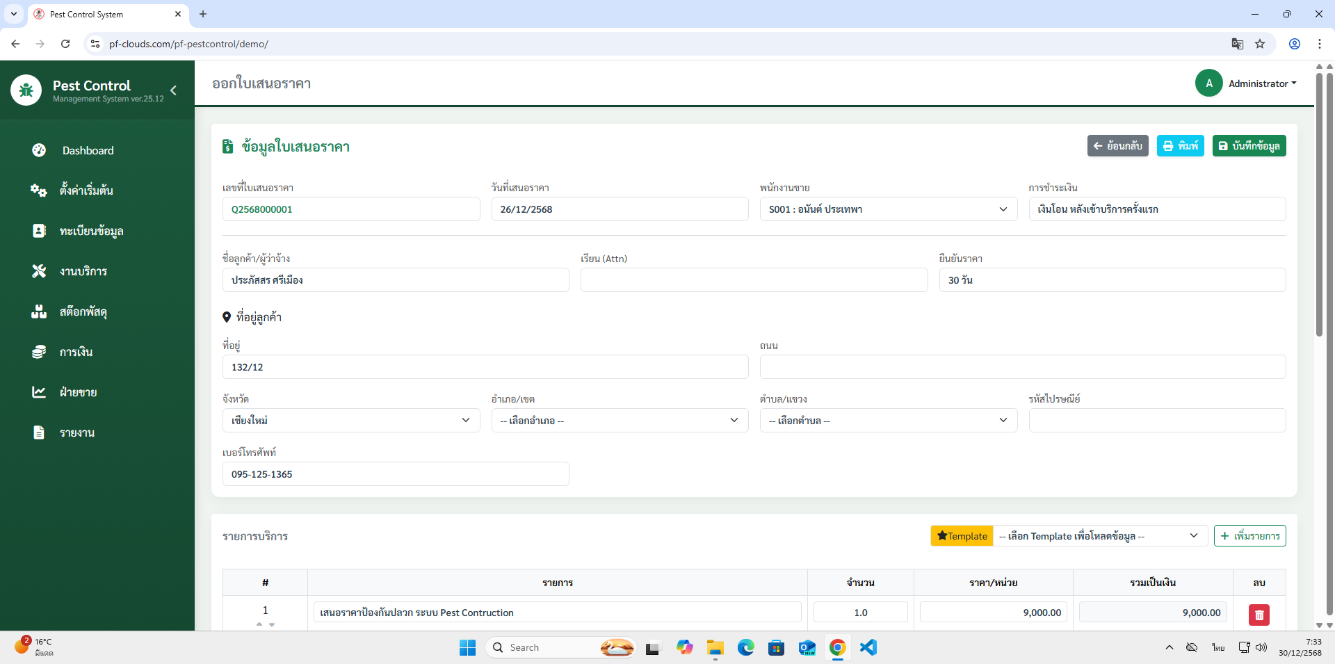 คุณสมบัติโปรแกรม Pest Control System Ver.2026