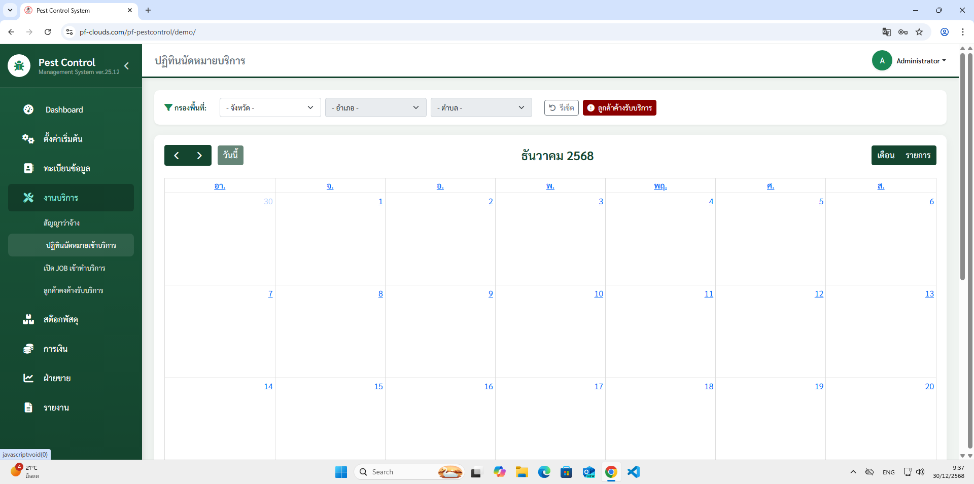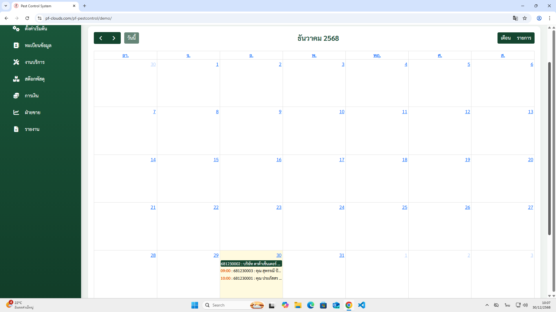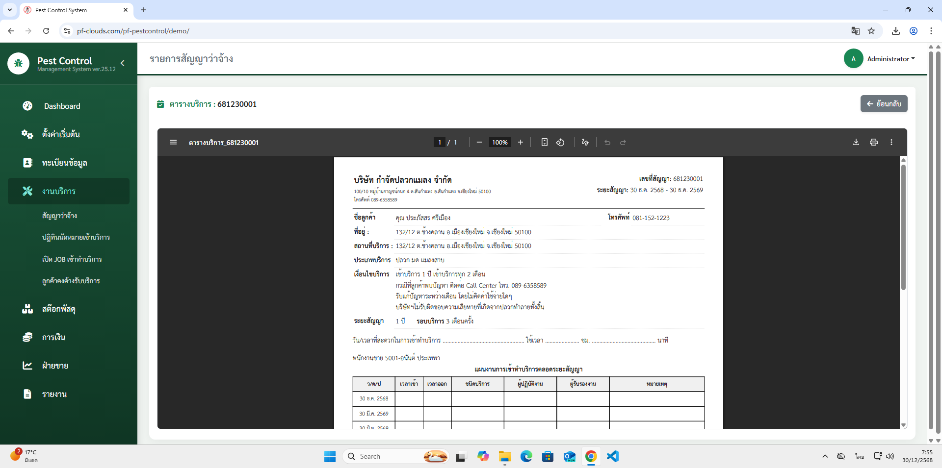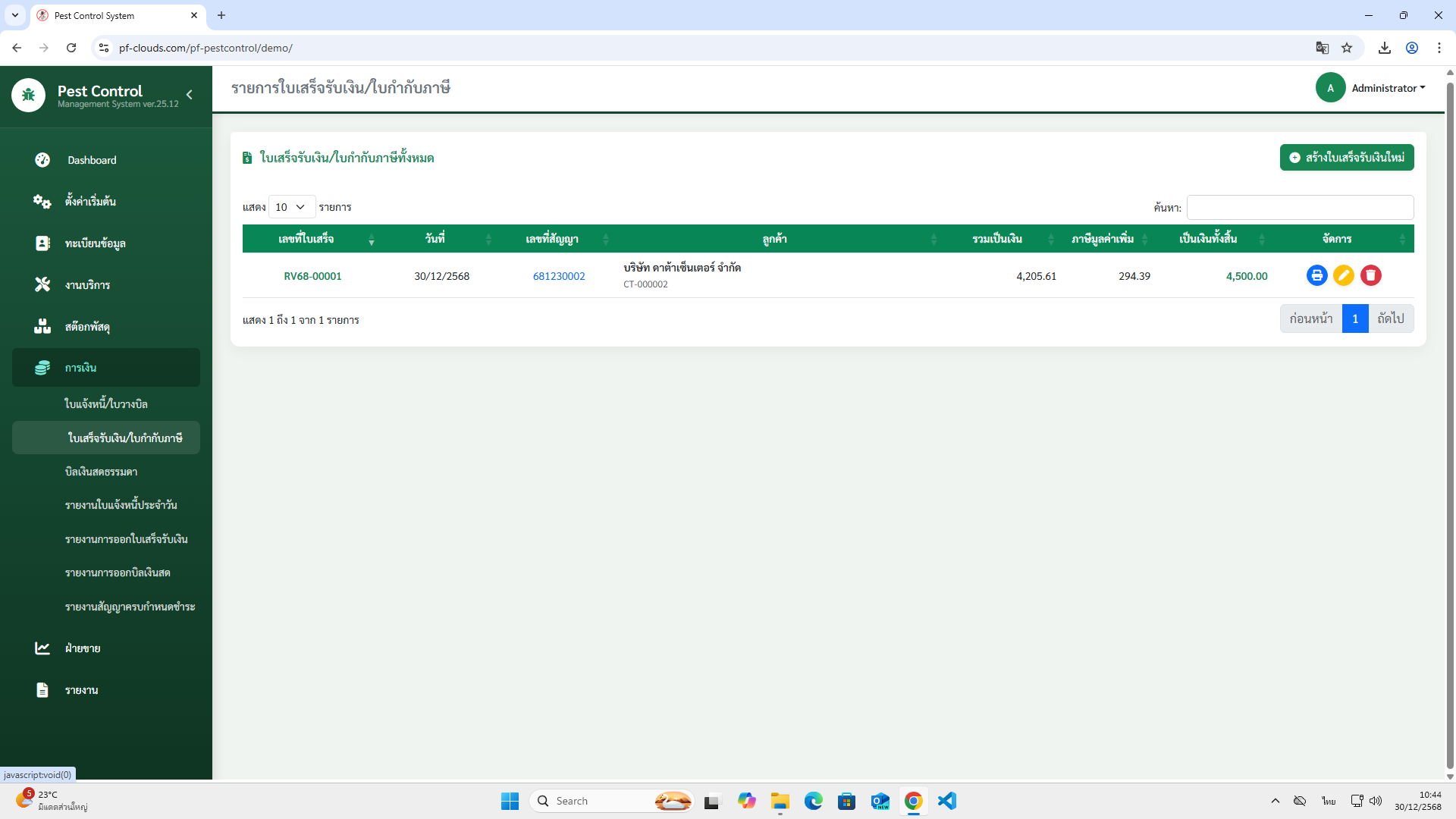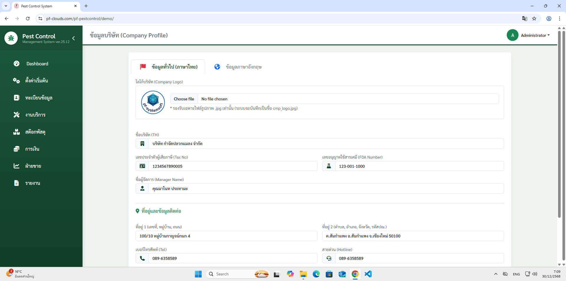 คุณสมบัติโปรแกรม Pest Control System Ver.2026
