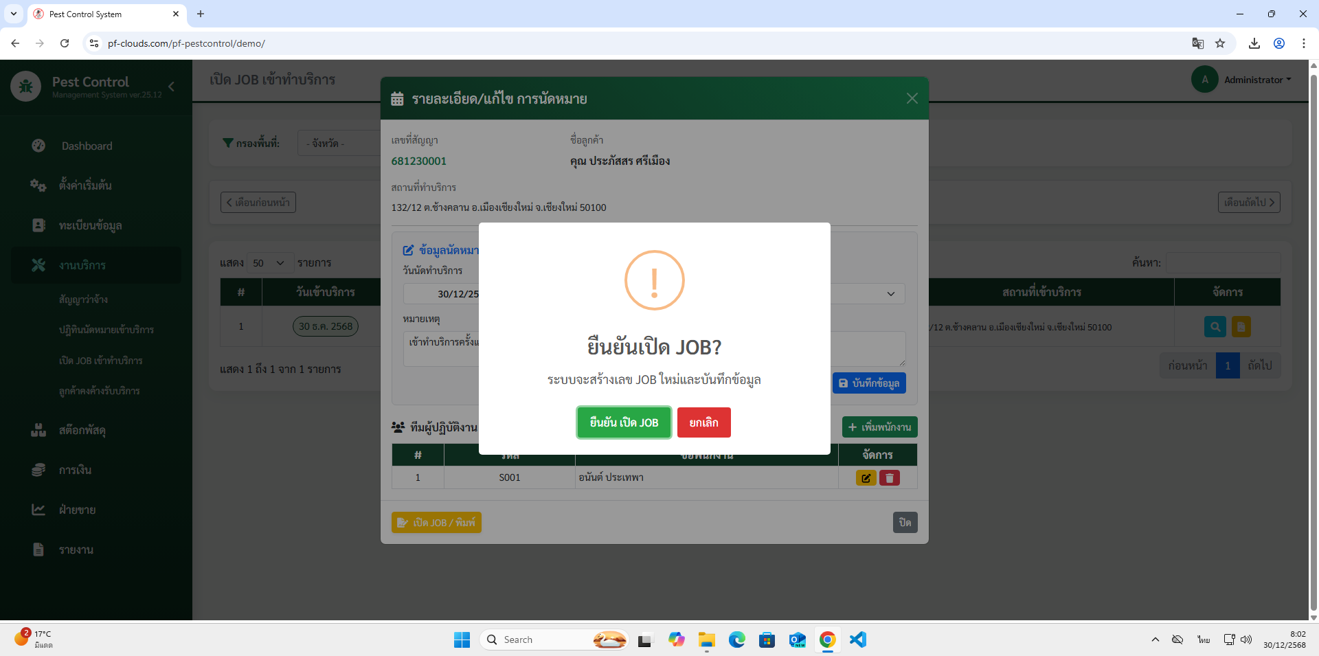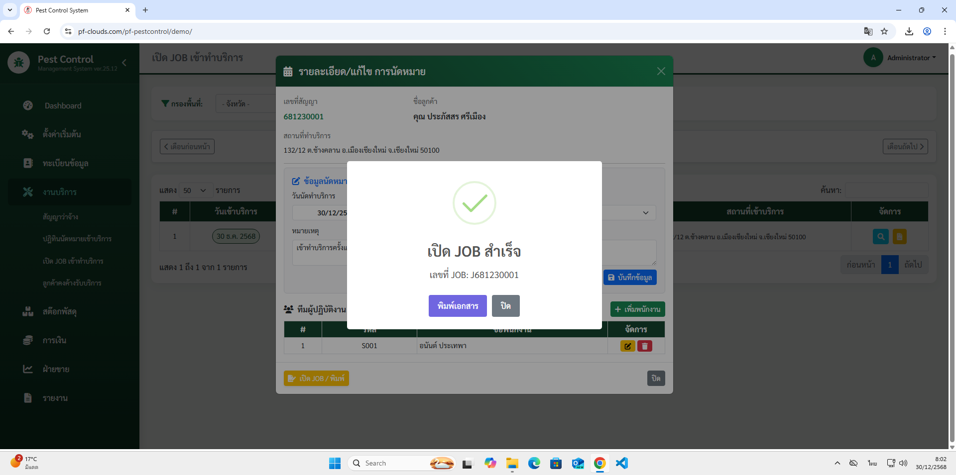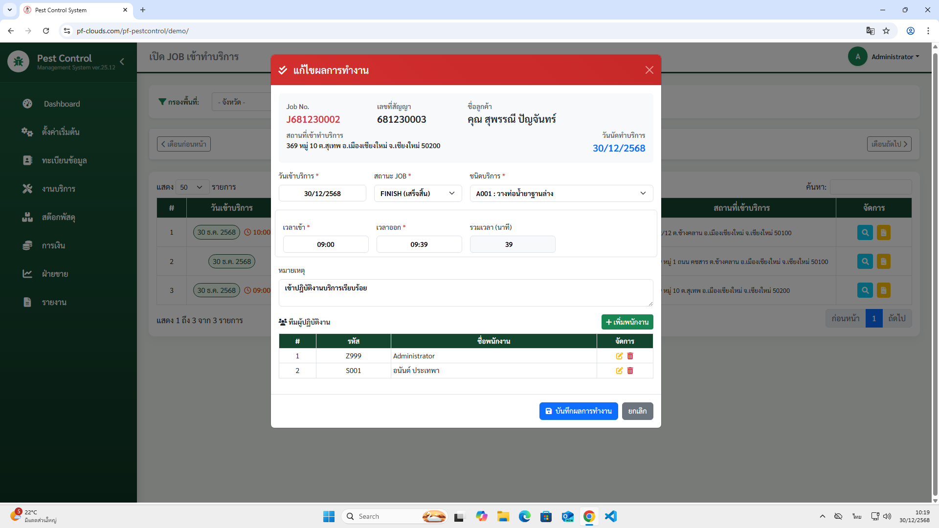 - เปิด JOB เข้าทำบริการ
