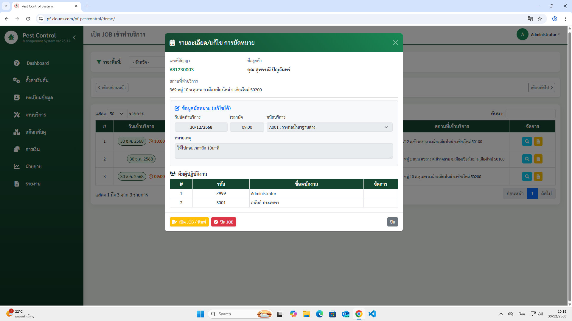 - เพิ่มเติมระบบงาน Schedule เข้าทำบริการ จ่ายงานให้พนักงานปฎิบัติพร้อมเปิด / ปิด JOB