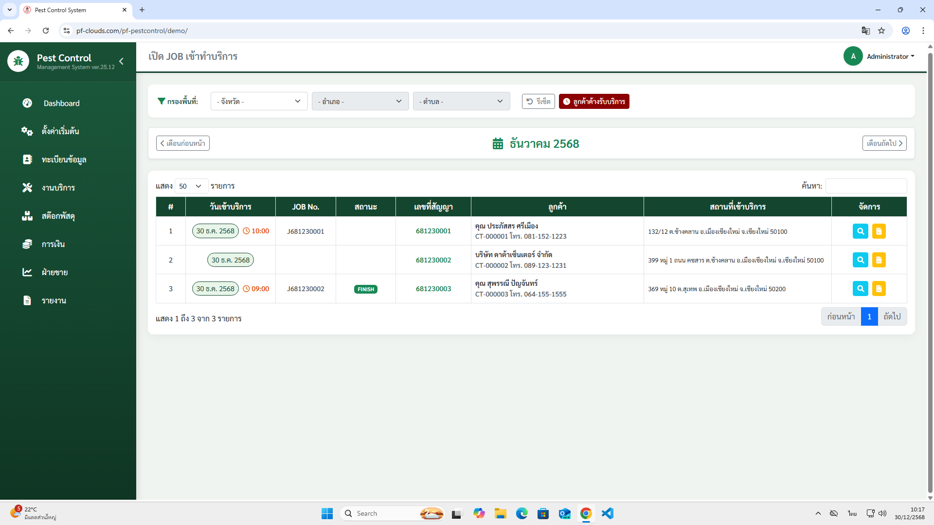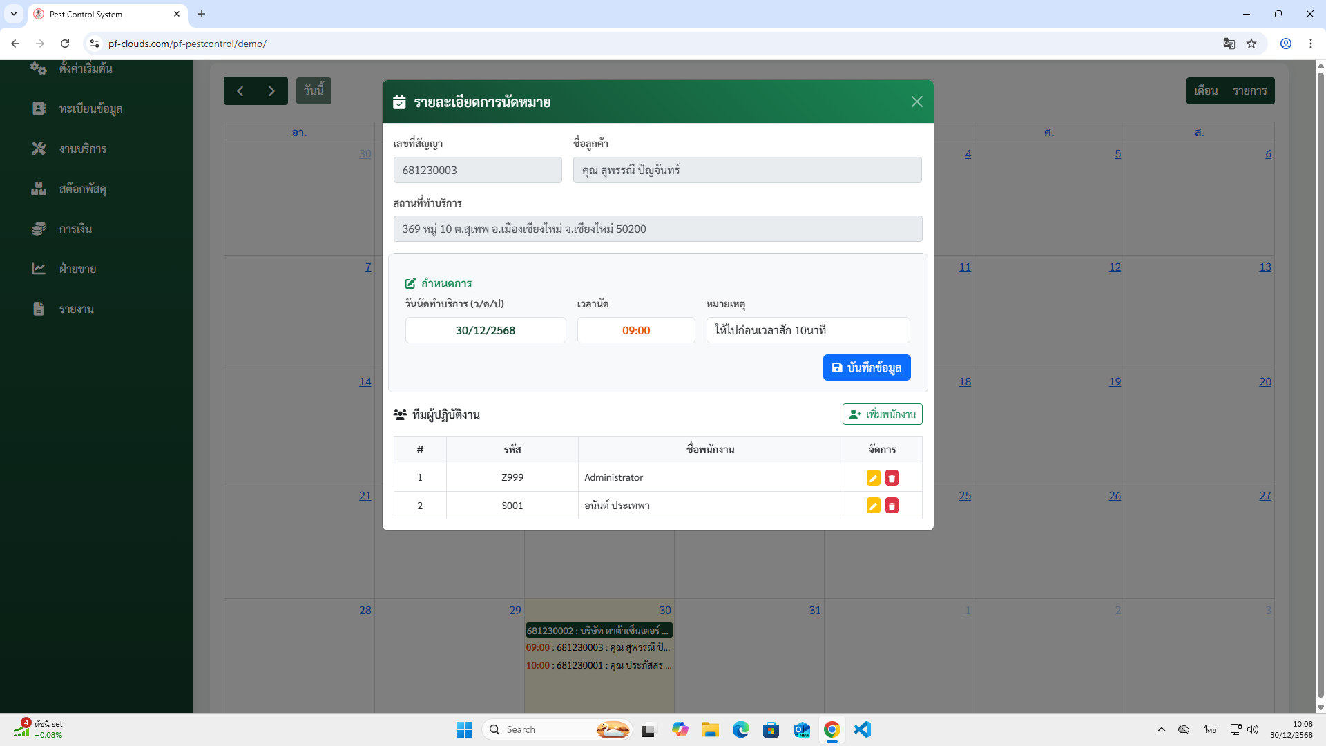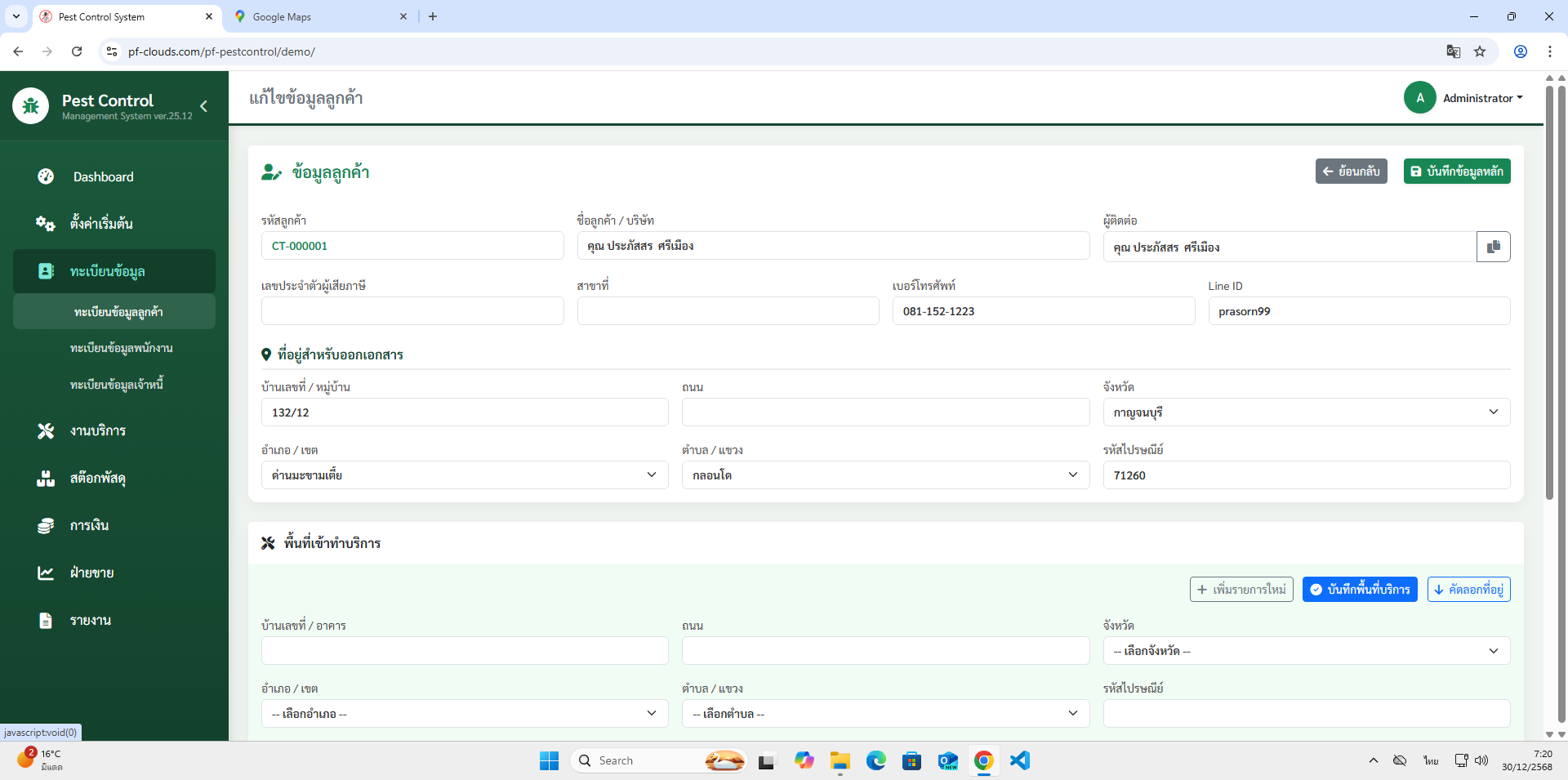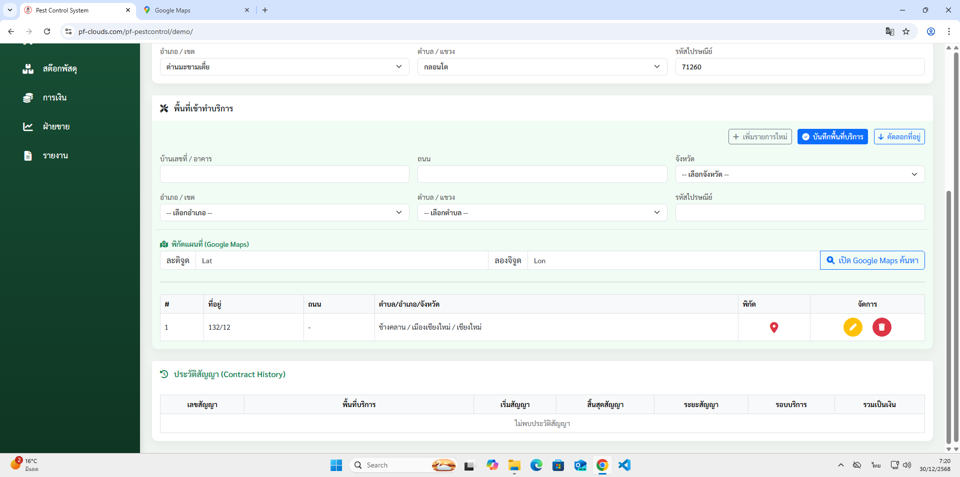 - ชื่อลูกค้า มีสถานที่เข้าทำบริการได้มากกว่า 1 ได้ พร้อมบันทึกพิกัด Google map