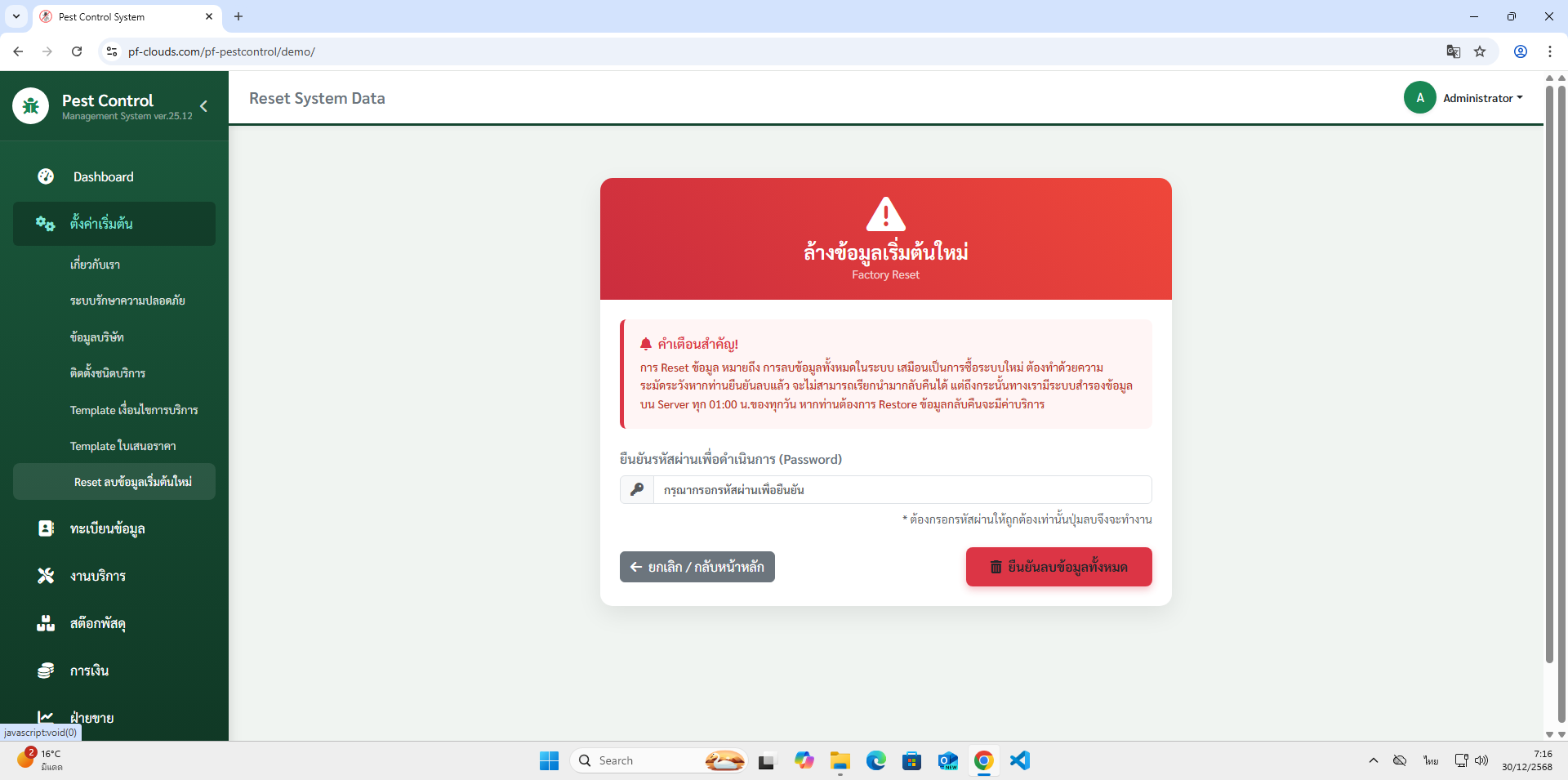 - Reset ลบข้อมูลเริ่มต้นใหม่