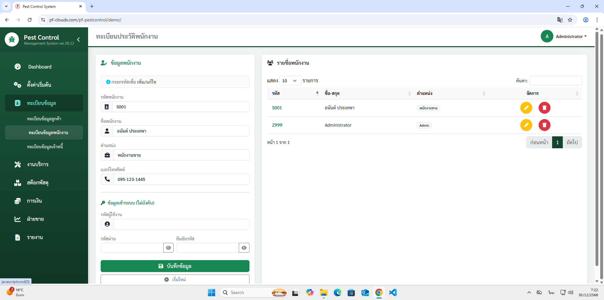 - ทะเบียนข้อมูลพนักงาน