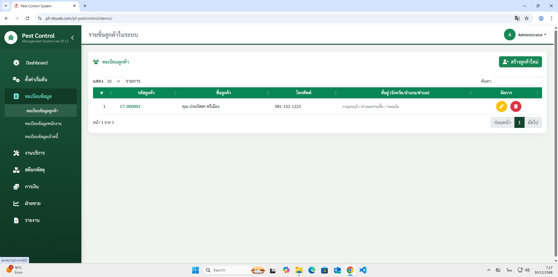 - ทะเบียนข้อมูลลูกค้า